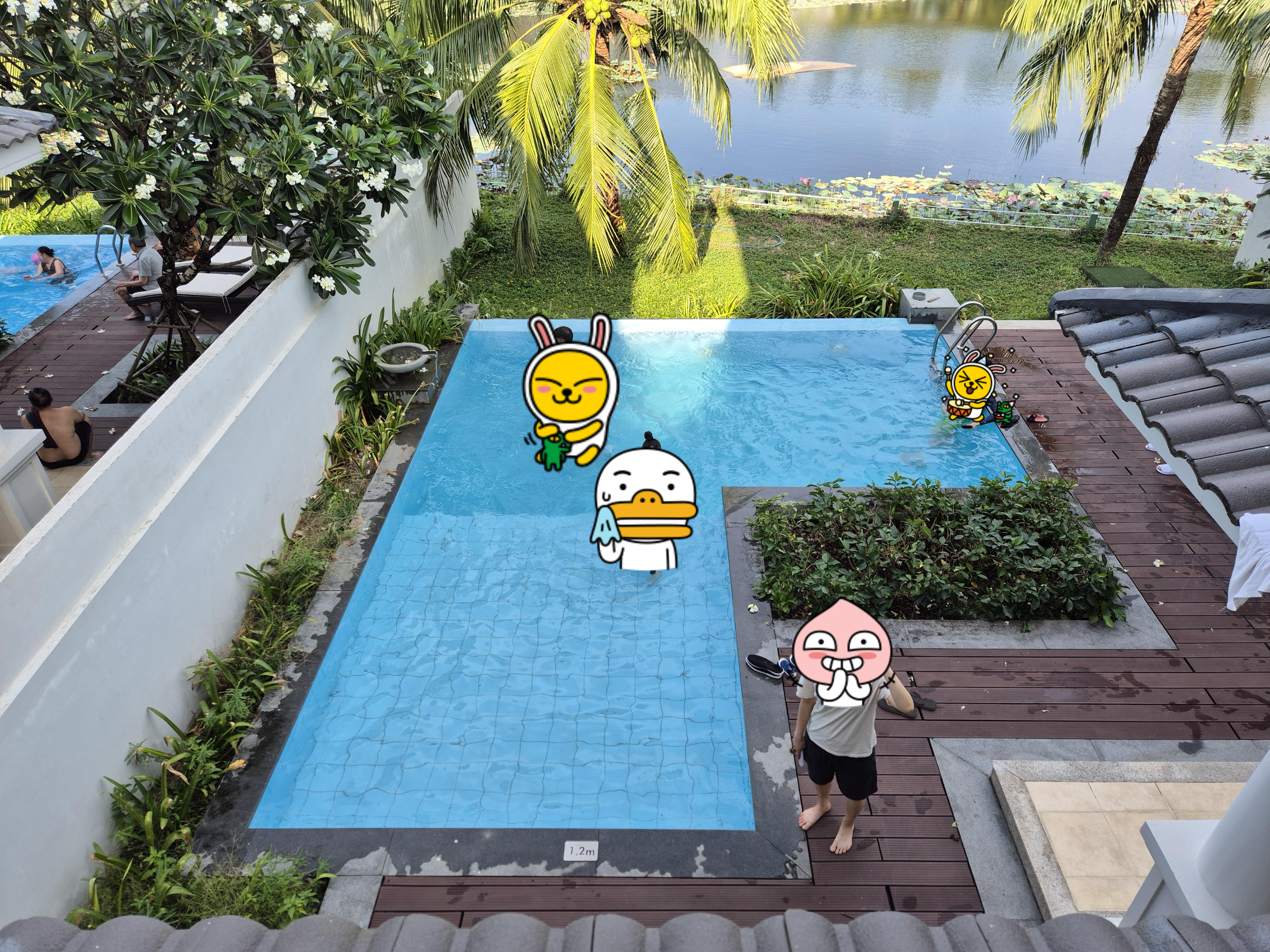 풀빌라인데 물을 봤으면 바로 들어가야 정상아니겠는가 ㅋ 바로 입수.