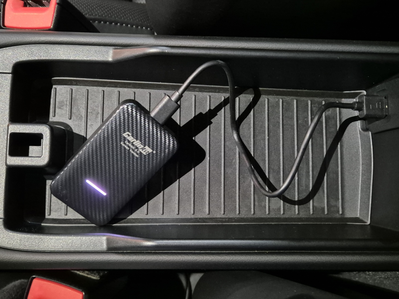 불안했지만 이번엔 암레스트 콘솔 수납함쪽 USB에 연결했더니 드디어 뾰로롱 연결이 되었다.