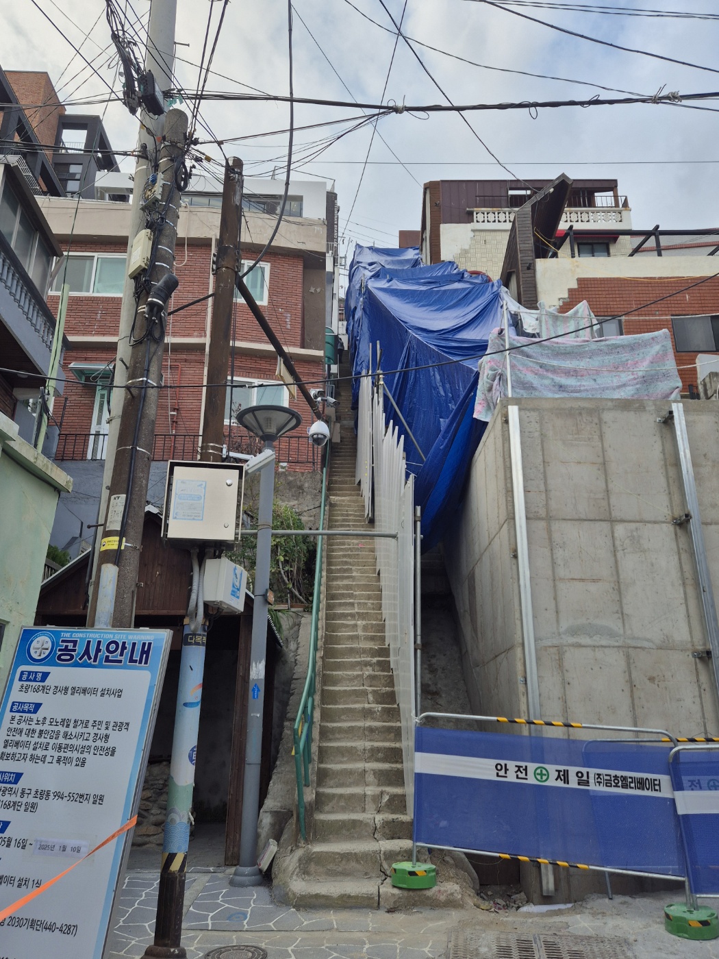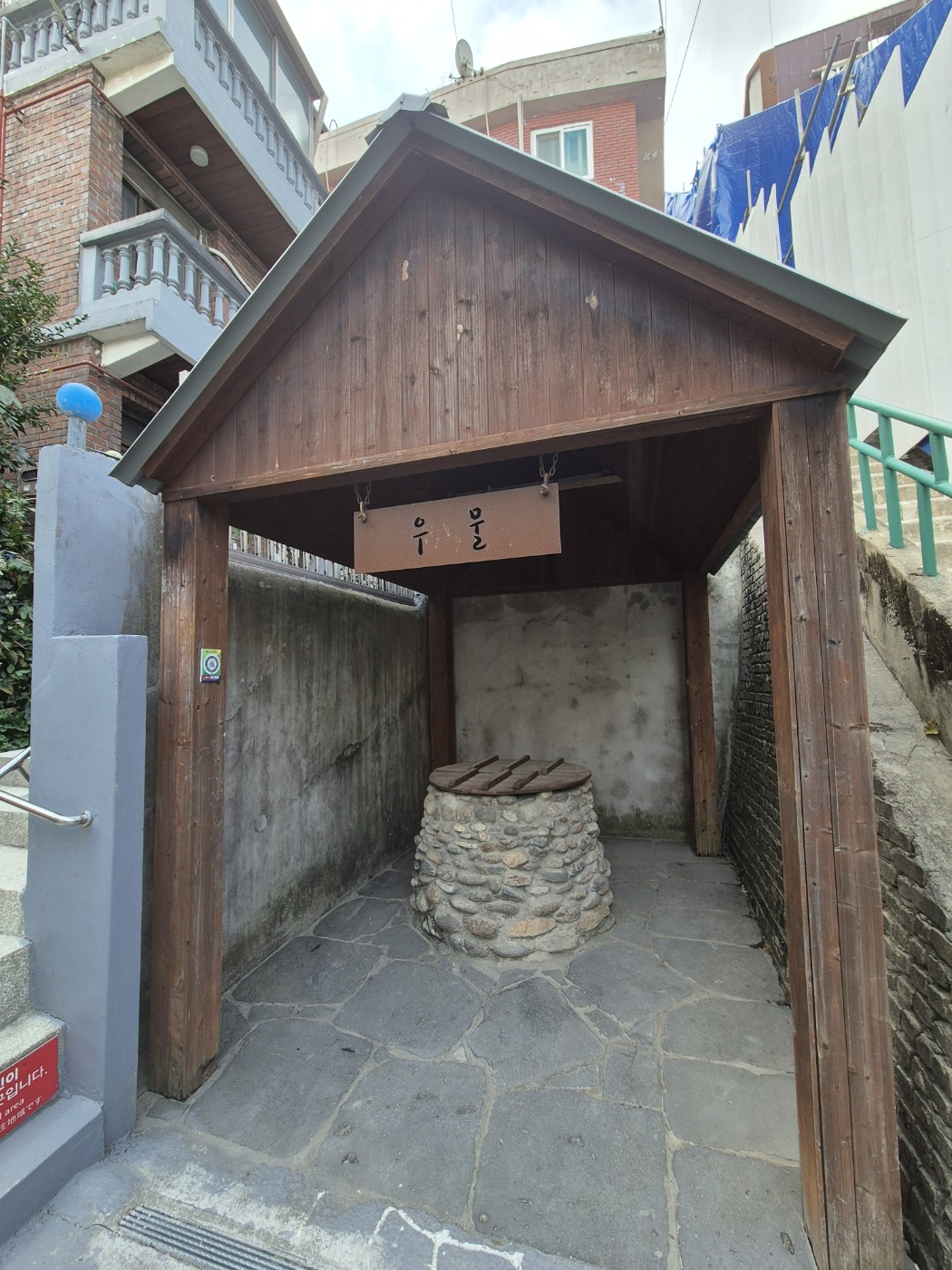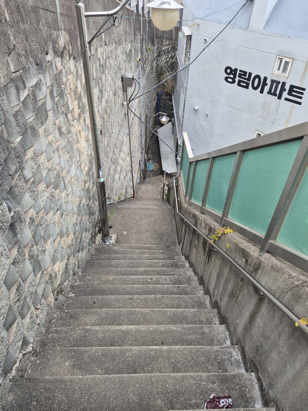 경사형 엘리베이터 공사로 168계단의 통로는 매우 좁아져있었다. 계단 옆에는 아래와 같이 우물이 있었다.