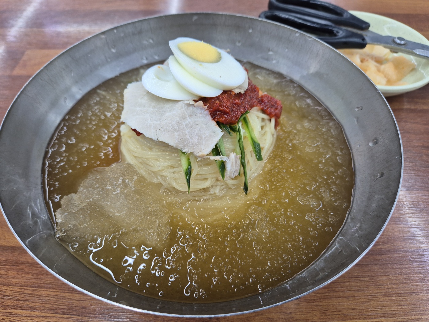 면에 간이 많이 되어있지 않아서 약간 심심한 느낌도 들지만 국물이나 양념을 같이 쳐서 먹으면 괜찮다. 날씨가 추워졌지만 먹고싶어서 방문. 수육1점 메뉴는 벽 메뉴판에 없었는데, 계산서에는 있더라. 몇점 시켜먹을까 고민했지만 배가 별로 고프지 않아서 그냥 밀면만 먹고 말았다.