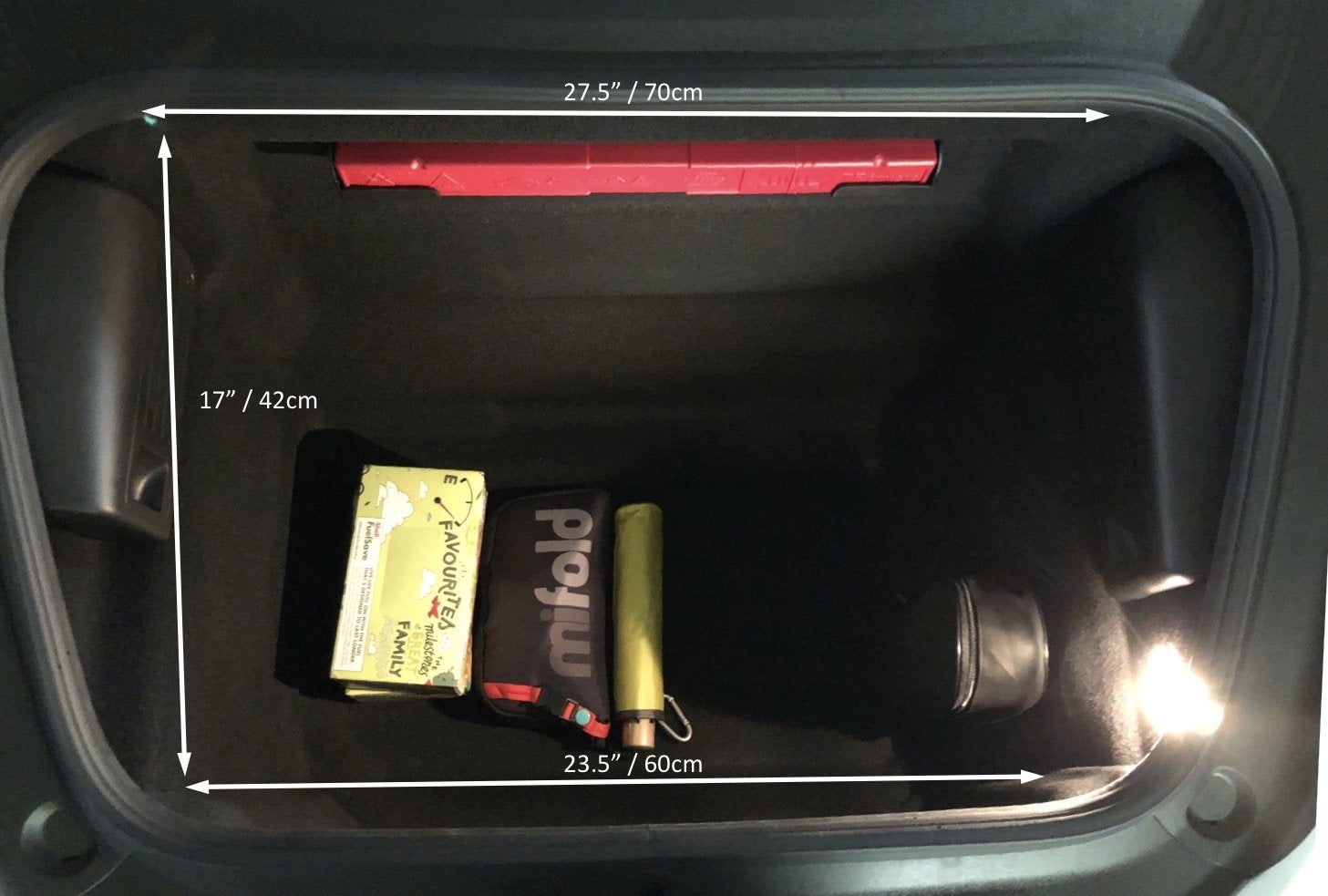 해외 자료를 기반으로 24인치 캐리어가 프렁크에 들어간다는 것을 파악해서 24인치 캐리어를 골랐다. 또 프렁크가 깊이가 깊어서 되려 트렁크보다는 프렁크쪽이 캐리어 넣기에 좀 더 좋다. 무엇보다도 앞쪽에 무게를 실어줘야 전후 배분 5:5에 더 가까워 지는...