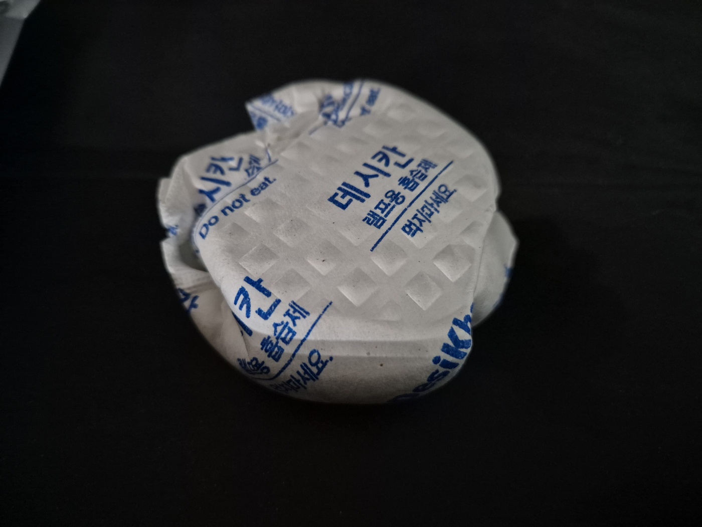 흡습제는 35그람짜리 2개, 25그람짜리 2개를 구입했다. 이유는 딱히 없었는데, 교환하고 나니 뽀록이지만 이 조합이 맞는것 같다.