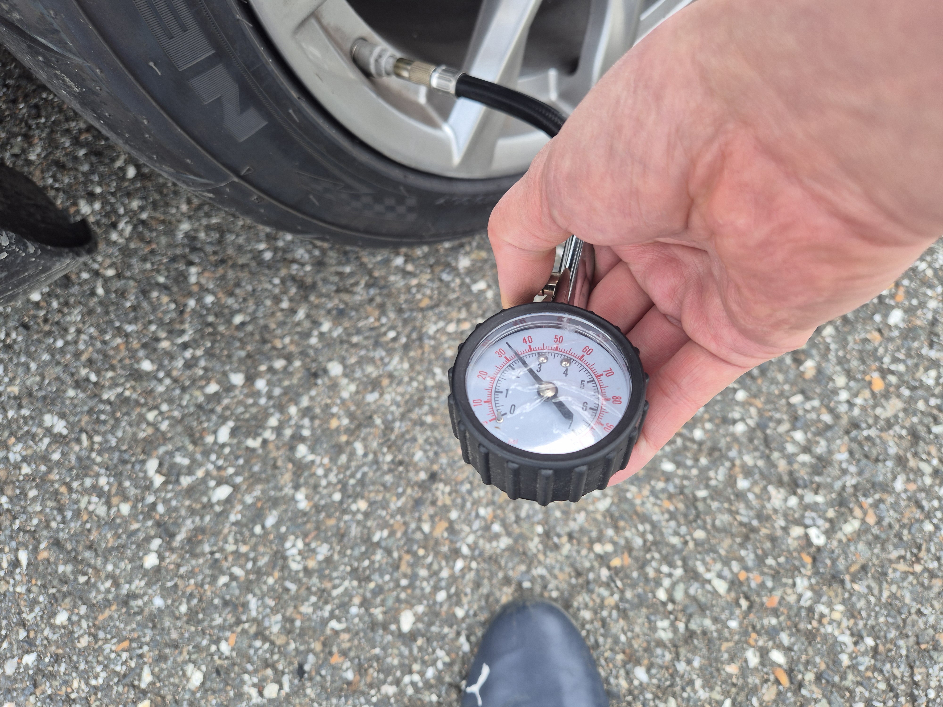 공기압은 일단 열간 35를 목표로 바람을 빼주었다. 최종적으로는 냉간기준으로 앞 26, 뒤 24정도까지는 빼줘야 목표치인 35정도가 될 것으로 추정된다. 하지만 공기압이 35까지 올랐을때 타이어 온도가 높아서 제 성능이 안나오는걸 생각해보자면, F27, R25 정도로 맞춰놓고 완전히 공기압이 다 오르기전에 어택을 제대로 한 번 하는게 더 나을 것 같기도..