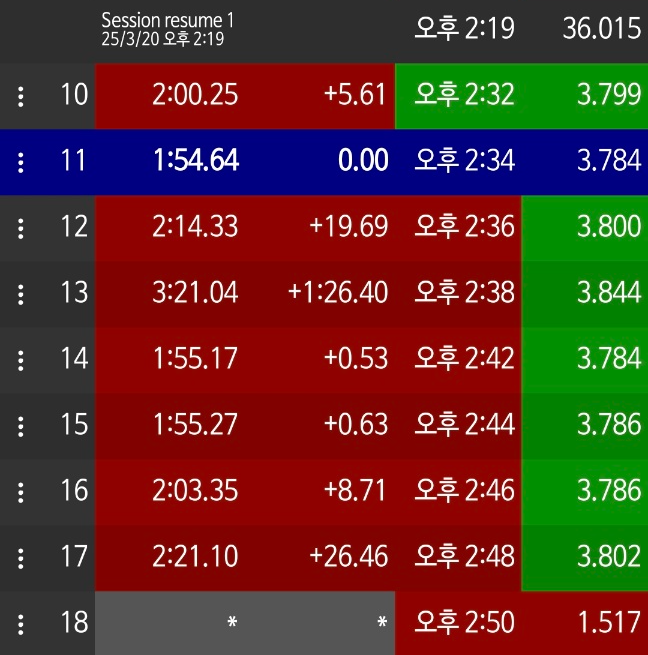 다음엔 랩타입을 줄이는것보다도 수동모드에 패들에 익숙해지는 연습이 더 재밌을것 같다는 생각도 들었다.