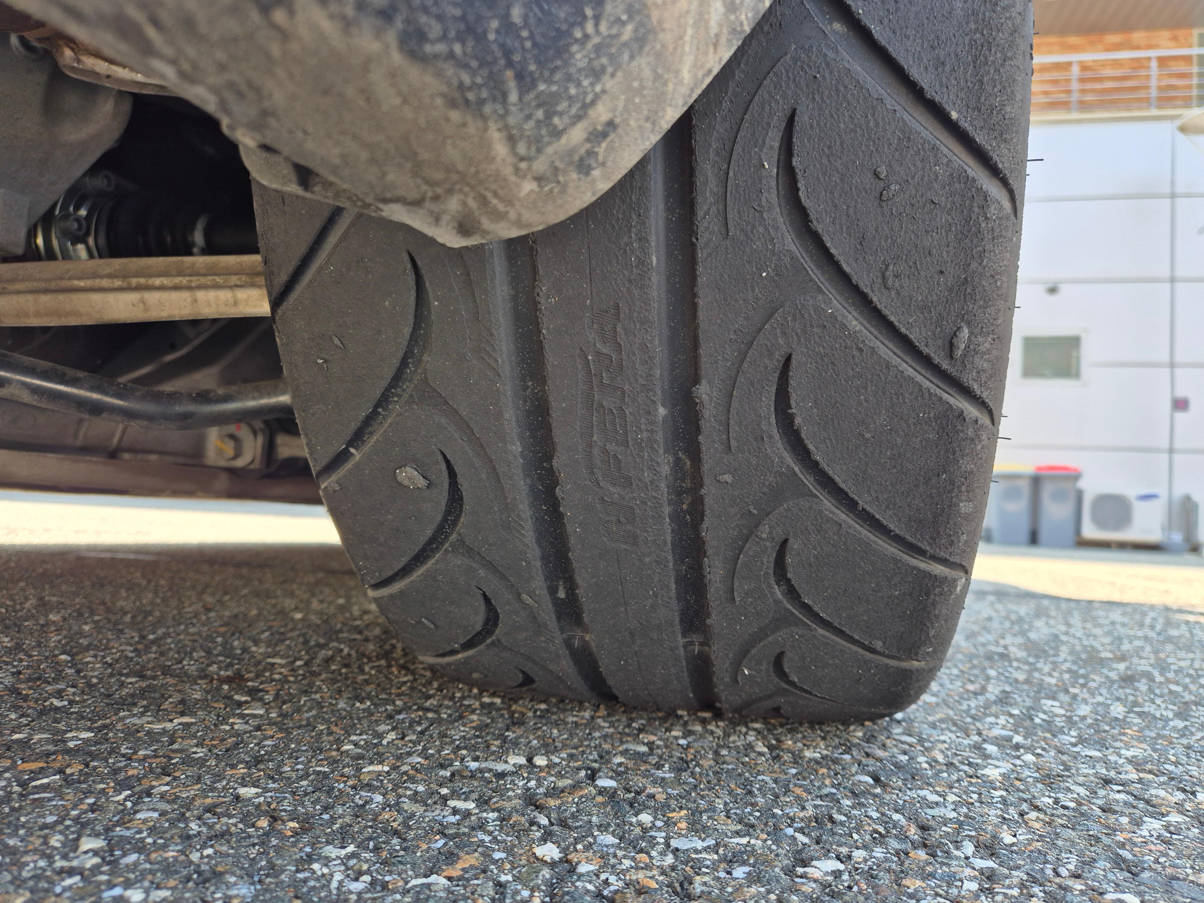 타이어 상태를 보건데, 리어타이어는 캠버가 필요해보인다. 안쪽이 상대적으로 덜 닳고 있는걸로 보아 리어 그립을 제대로 활용하지 못하고 있는 듯. 얼라이는 또 어디서 봐야되나..... 사진은 안찍었지만 앞쪽은 뒤보다는 좀 더 고루 그립을 사용하고 있는듯.
