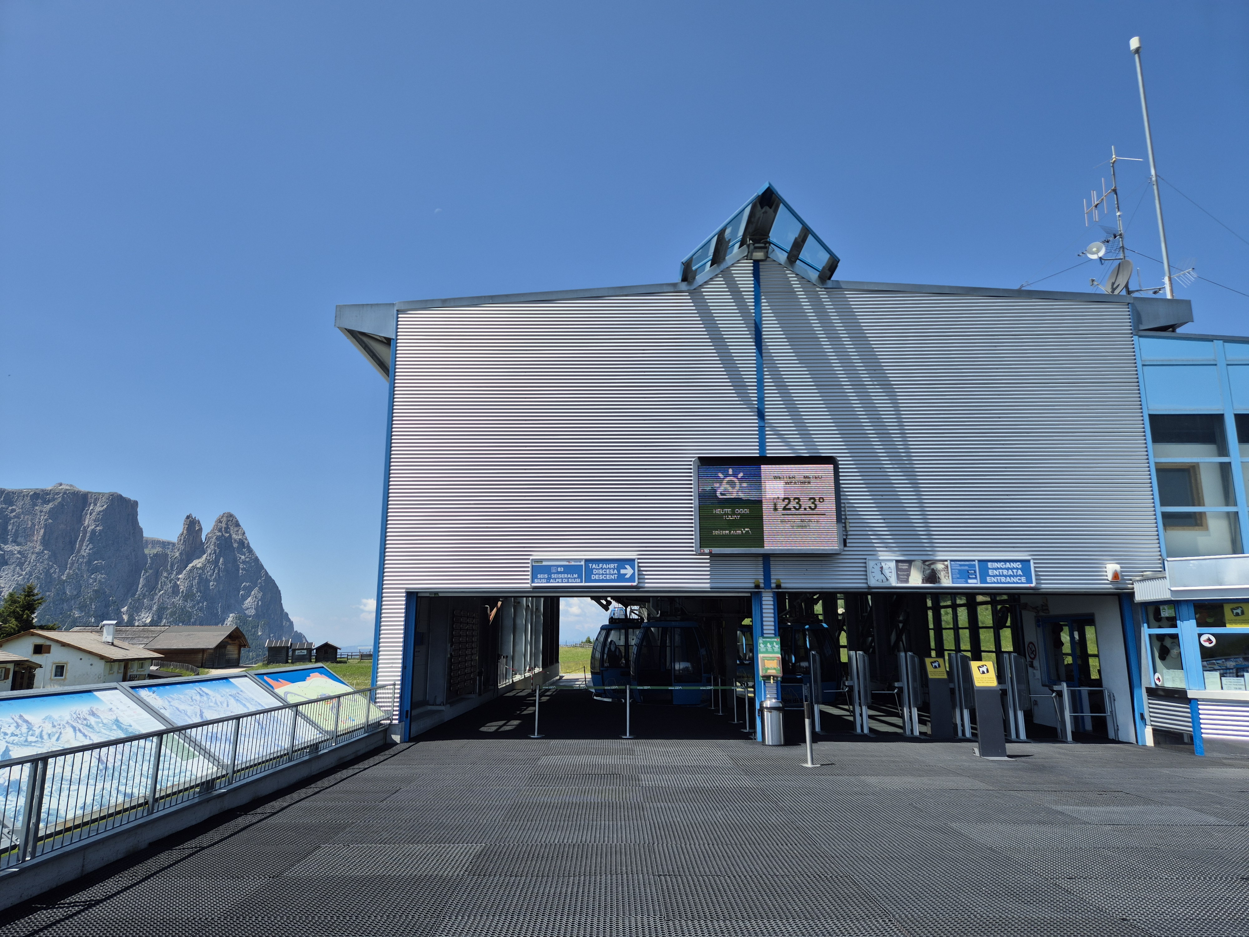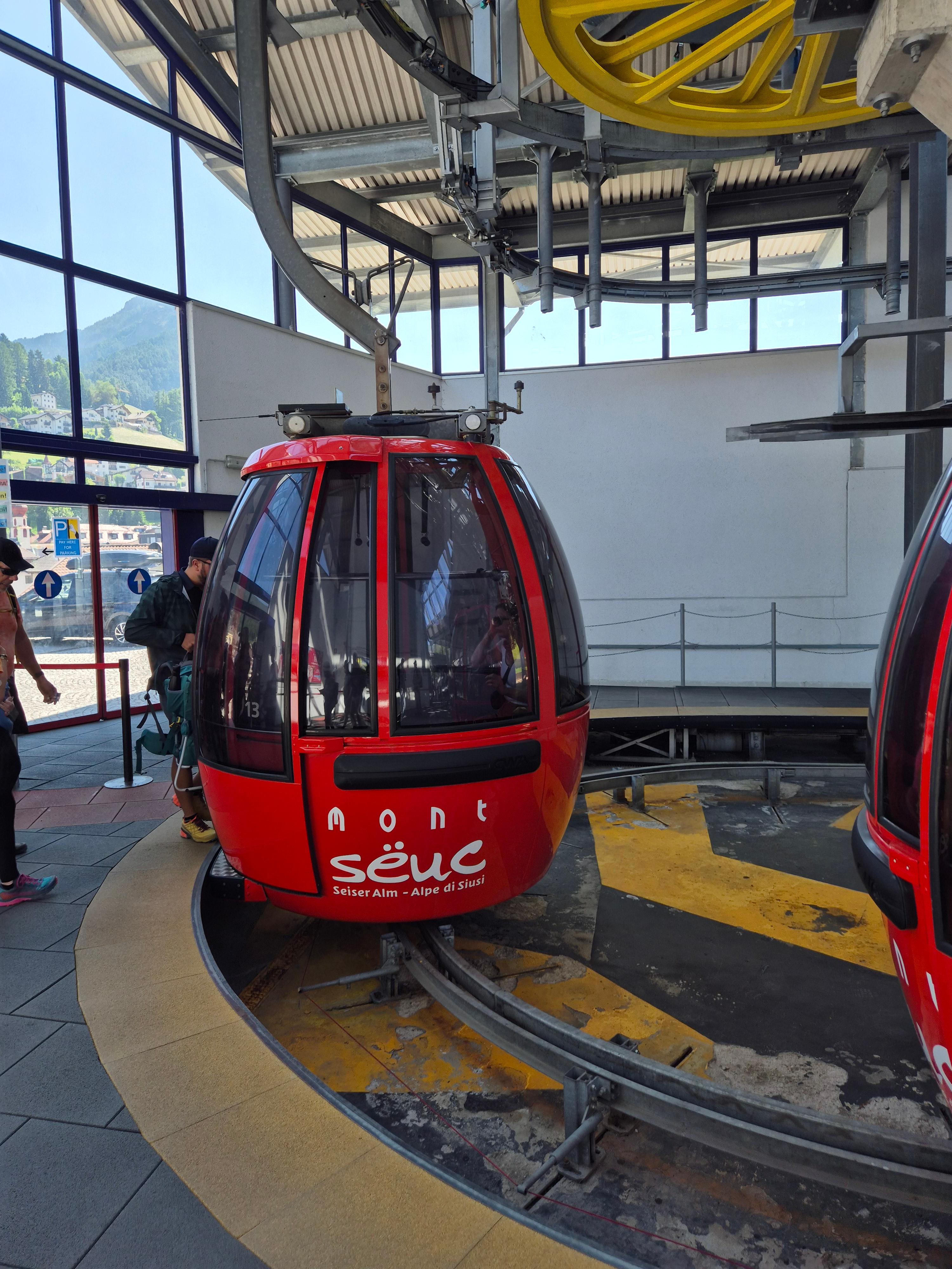 세체다 관광을 마치고 내려와서 처음에 슈퍼 섬머 패스를 받았던 쪽으로 내려와서 곤돌라를 다시 타본다. 알페 디 시우시 쪽으로 올라가는 곤돌라이다. 뭐라고 읽어야할지 모르겠어서 검색해보니 몽쉑 이라는듯? 아무튼 이쪽은 빨간 곤돌라. 볼차노쪽은 파란 곤돌라다.