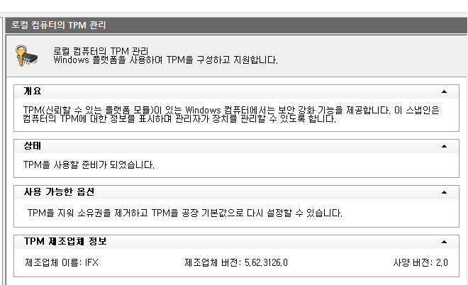 TPM이 윈도우에 정상적으로 인식되고 있었다.